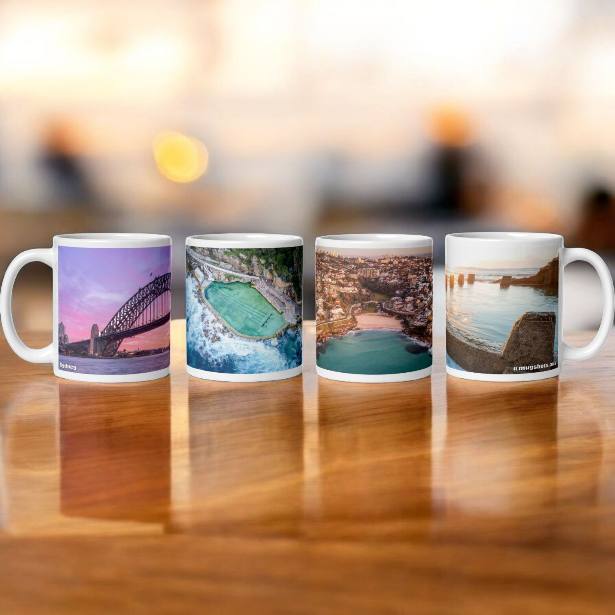 Born from a love of photography and Aussie culture, Mugshots Australia turns familiar places into everyday keepsakes. Each design blends original landscape shots with bold suburb typography — a little piece of home you can sip from, carry, or rest your cuppa on.